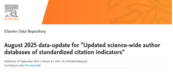 近日,斯坦福大学(Stanford University)和国际权威学术出版社爱思唯尔(Elsevier)共同发布2025年全球前2%顶尖科学家榜单(World's Top 2% Scientists)。