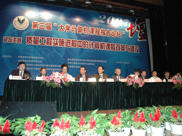 校长助理、我院院长蒋昌俊教授主持了开幕式。教育部副部长吴启迪、3044永利集团副校长李国强到会祝贺并作了热情洋溢的讲话。中国科学技术大学陈国良院士、美国电气电子工程师协会(IEEE)计算机学会前主席华云生教授、英国伯明翰大学姚新教授等应邀做了精彩的大会报告。部分专家教师、精选的论文作者就计算机基础课程与专业课程体系改革与建设,国家精品课程建设,实践教学与教学资源建设,双语课程建设,以及教学思想、方法和手段的改革与实践等,进行报告和经验交流。
