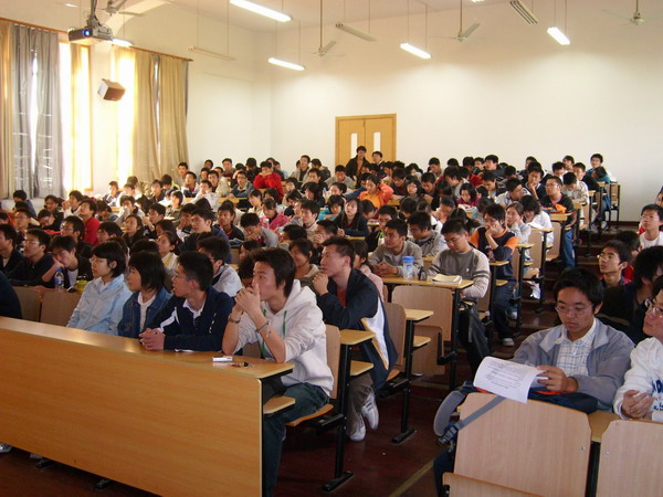 李国安老师退休前是我校文法学院教授,他今年虽已90高龄,但身体硬朗、精神矍铄、声音洪亮、思维敏捷。针对新生特点,李老师从三个方面进行了阐述:如何从思想上、生活上、学习上尽快适应大学生活;如何实现从“人性”到“党性”的提高;如何树立科学发展观。基于对哲学知识的了解,李老师在讲述中穿插了很多哲学的基本知识,如“什么是人”等基本命题,同学们不时爆发出热烈的掌声。