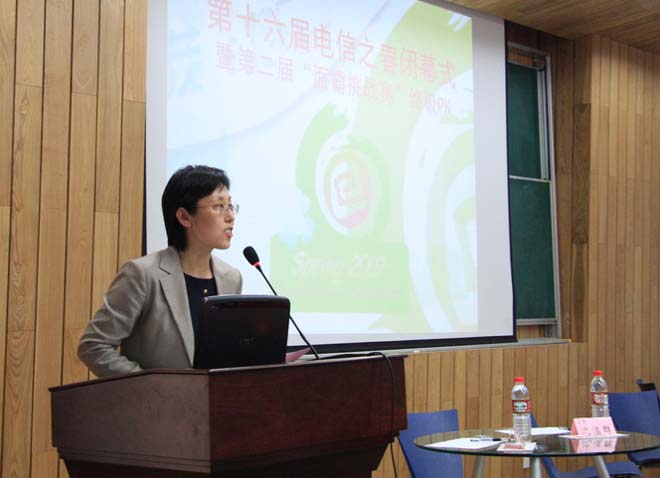 4月29日,学院第十六届电信之春闭幕式暨第二届“面霸”挑战赛在电信大楼117隆重举行,来自学院各个专业的研究生一百多人观看了比赛,学院党委副书记乔非观看了比赛并致闭幕辞。