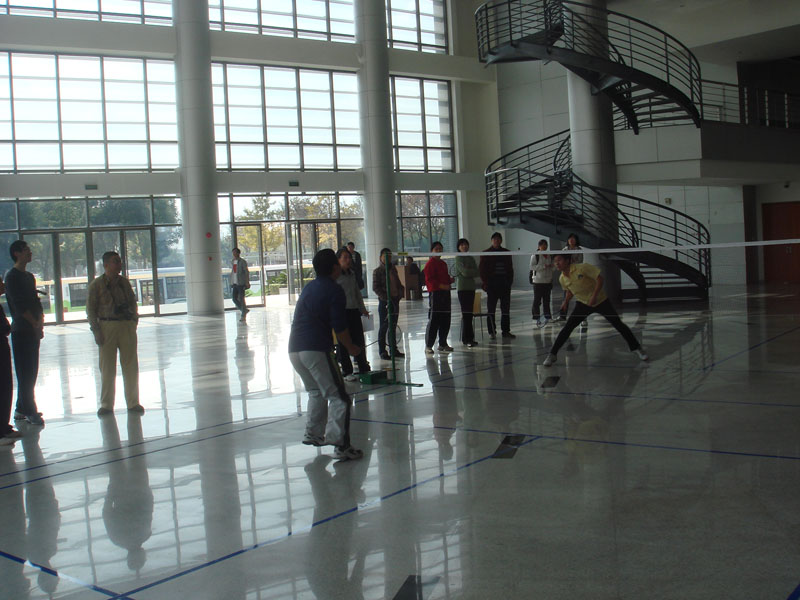 11月24日下午,在嘉定校区汽展中心大厅。电信学院羽毛球队与嘉定校区管委会羽毛球队举办了团体对抗赛。比赛进行了男女单打、男女双打、混合双打5个项目,嘉定校区管委会羽毛球队以3:2战胜我院羽毛球队。