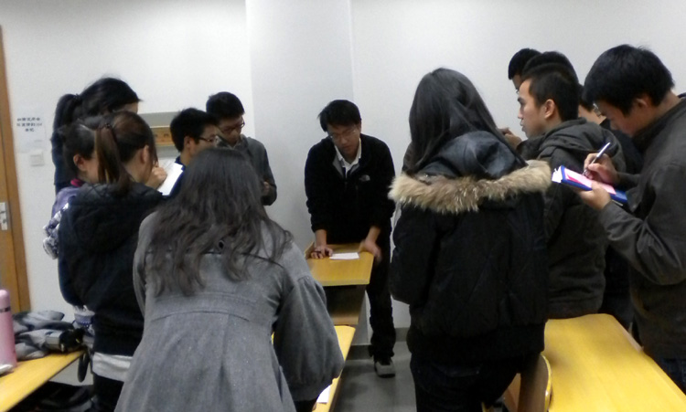 讲座还特意设计了模拟面试环节,邀请500强代理面试官给同学们提供全流程、全标准的500强团体面试测评。在模拟面试中,先由每个同学进行1分钟的英语自我介绍,然后分成13人的团队进行开放性的案例讨论,最后由面试官对每个同学的表现做出一对一的专业点评。