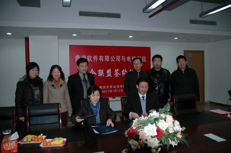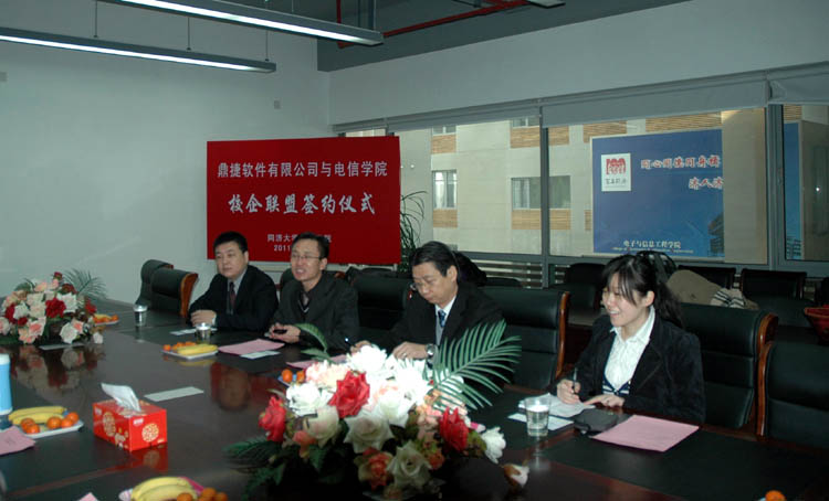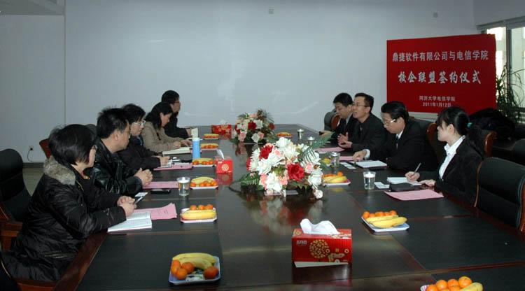 1月12日,鼎捷软件有限公司与我院校企联盟签约仪式在嘉定校区学院会议室举行。鼎捷集团副总裁潘东,我院副院长乔非、党委副书记向阳、董变林,鼎捷软件有限公司代表及我院教务科、实验中心负责人等参加签字仪式。