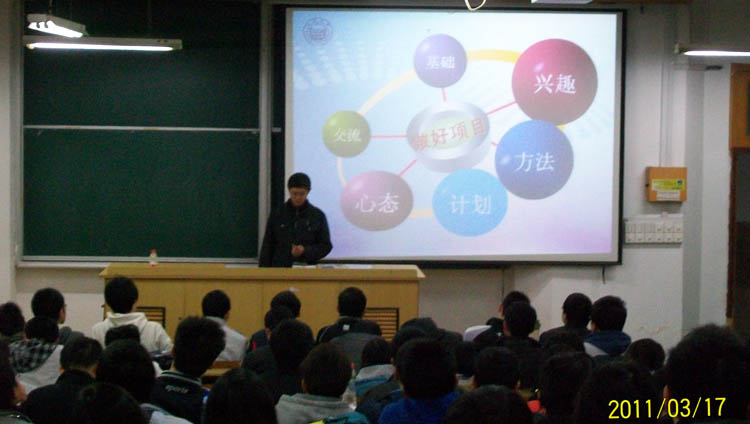 我院第七届“E海扬帆”大学生科技节拉开帷幕。作为科技节“励志 博学 讲坛版”的第一个活动――“第六期大学生创新训练计划(SITP)宣讲会”,3月17日晚在四平路校区南楼101教室举行,活动吸引了近200名同学参加。