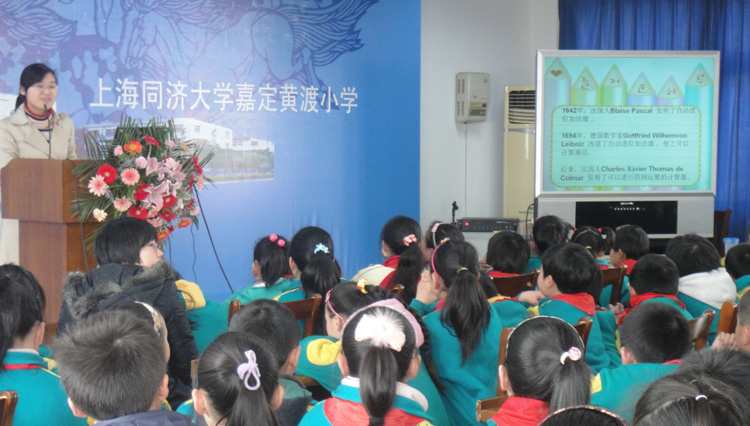 我院“E海扬帆”大学生科技节,不仅营造校内大学生创新精神和实践能力的校园文化氛围。同时还以此为契机,将科技氛围拓展到了周边的小学校园。3月23日下午,我院志愿服务中心的6名志愿者到黄渡小学,给三年级的全体同学作了一次题为“计算机的发展”的专题讲座,受到了学校师生的热烈欢迎。