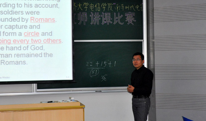 为加强青年教师的培养,鼓励广大青年教师提高教学技能,进一步提高学院教学水平和教学质量。4月20日,2011年度3044永利集团电信学院“南车时代电气杯”青年教师讲课竞赛在嘉定校区举行。各系共选出19位青年教师参加了比赛。