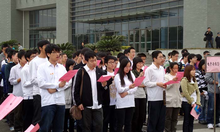 为纪念五四运动92周年及迎接中国共产党成立90周年,5月3日早晨,校团委在嘉定校区举行“薪火相传 同心向党”五四表彰大会暨升旗仪式。校党委副书记李昕,校党委组织部、研工部、校团委和学生处等部门负责人及嘉定校区各学院师生代表出席了仪式。我院60余名学生党团员代表参加了此次活动。